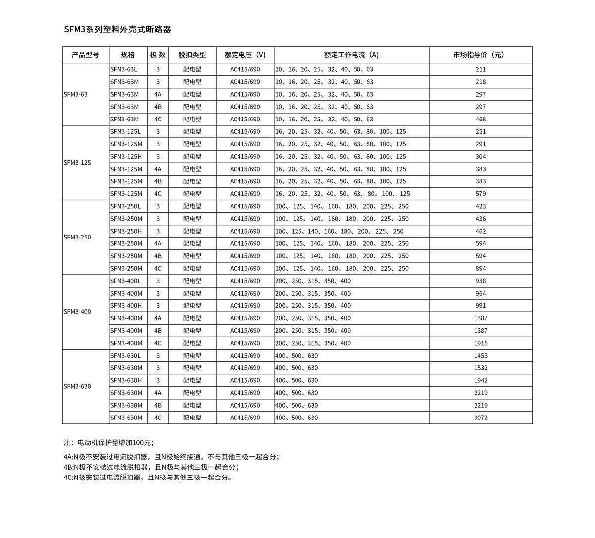 SFM3系列塑料外殼式斷路器(以下簡稱斷路器),適用于交流50/60Hz,其額定絕緣電壓至1000V,額定工作電壓415/690V,額定工作電流至8OOA的電路中作不頻繁轉換及電動機不頻繁起動之用(Inm≤40OA及以下)。斷路器具有過載、短路保護功能,能保護線路和電源設備不受損壞。具有體積小、分斷能力高、飛弧短、抗振動等特點。可垂直安裝(即豎裝)也可以水平安裝。