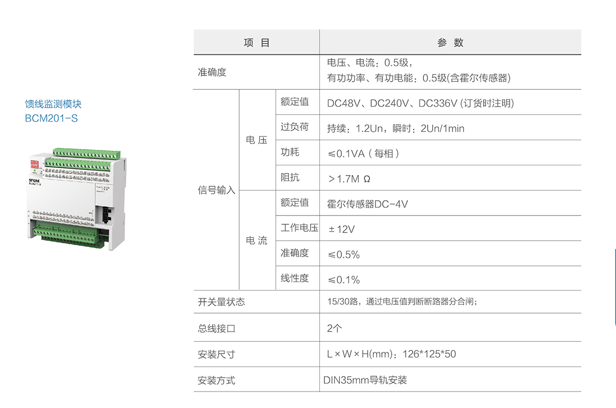 BCM201系列為直流測量。BCM系列精密配電監測單元用于監測數據中心交直流列頭柜的電力運行參數,測量進線和饋線支路的電壓、電流、電能、諧波等電參量,及所有斷路器開關狀態,具有跳閘報警功能。各輸出回路具有兩級用戶可設置的過流報警,預防潛在的電源故障。產品配置7寸彩色液晶觸摸屏,并提供以太網通信接口,方便接入其他系統。