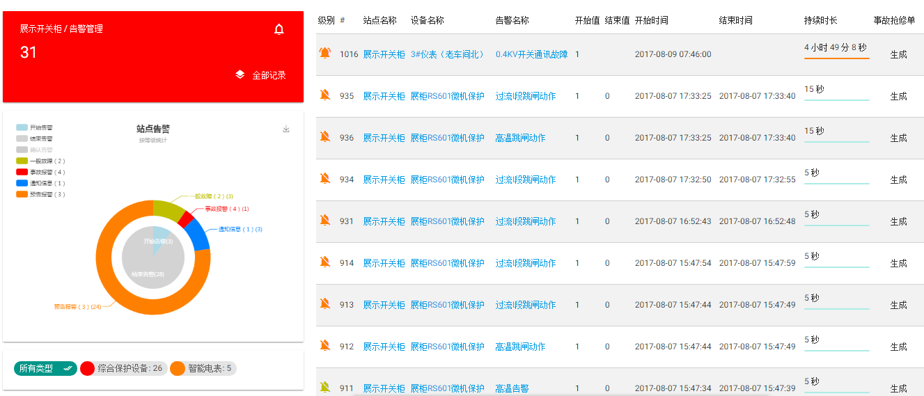 對(duì)各個(gè)回路運(yùn)行狀態(tài)實(shí)時(shí)監(jiān)測(cè),出現(xiàn)異常情況,立即提示并發(fā)出聲光報(bào)警,客戶可通過歷史記錄回溯進(jìn)行事故分析。